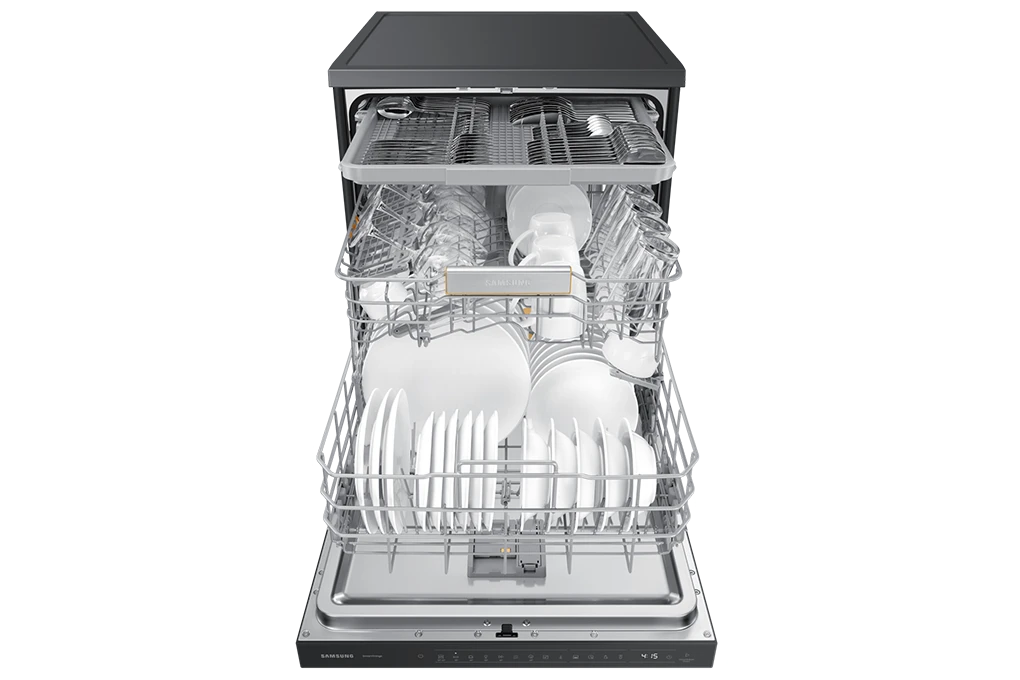 | Tiện ích khác | Bán tải Half load, Hẹn giờ bắt đầu rửa (từ 1 – 24 tiếng), Đèn LED báo hết muối, hết nước làm bóng, Động cơ Inverter rửa êm ái & tiết kiệm, Tự động làm sạch máy Self Clean, Tự động hé cửa ở cuối chương trình, Tiết kiệm điện năng với AI Energy Saving, Sắp xếp tiện lợi, linh hoạt chén dĩa Flex Load, Kết nối SmartThings – Giám sát & điều khiển từ xa, Khay rửa điều chỉnh độ cao linh hoạt cho từng loại chén đĩa, Giá đỡ êm Soft Railing dễ dàng & an toàn, Chế độ rửa nhanh Speed Booster, Bảng điều khiển ẩn bên trong, Aquastop – tự ngắt nguồn nước khi có rò rỉ, Chế độ làm sạch Hygiene Plus |